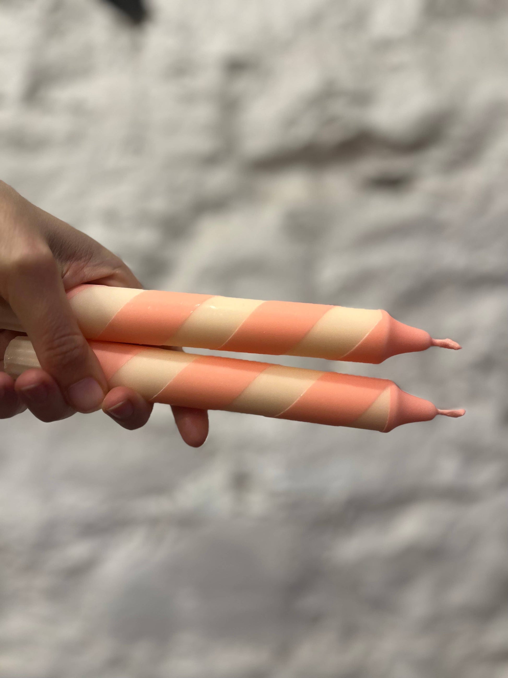 Cream & Peach Helter Skelter Taper Candle