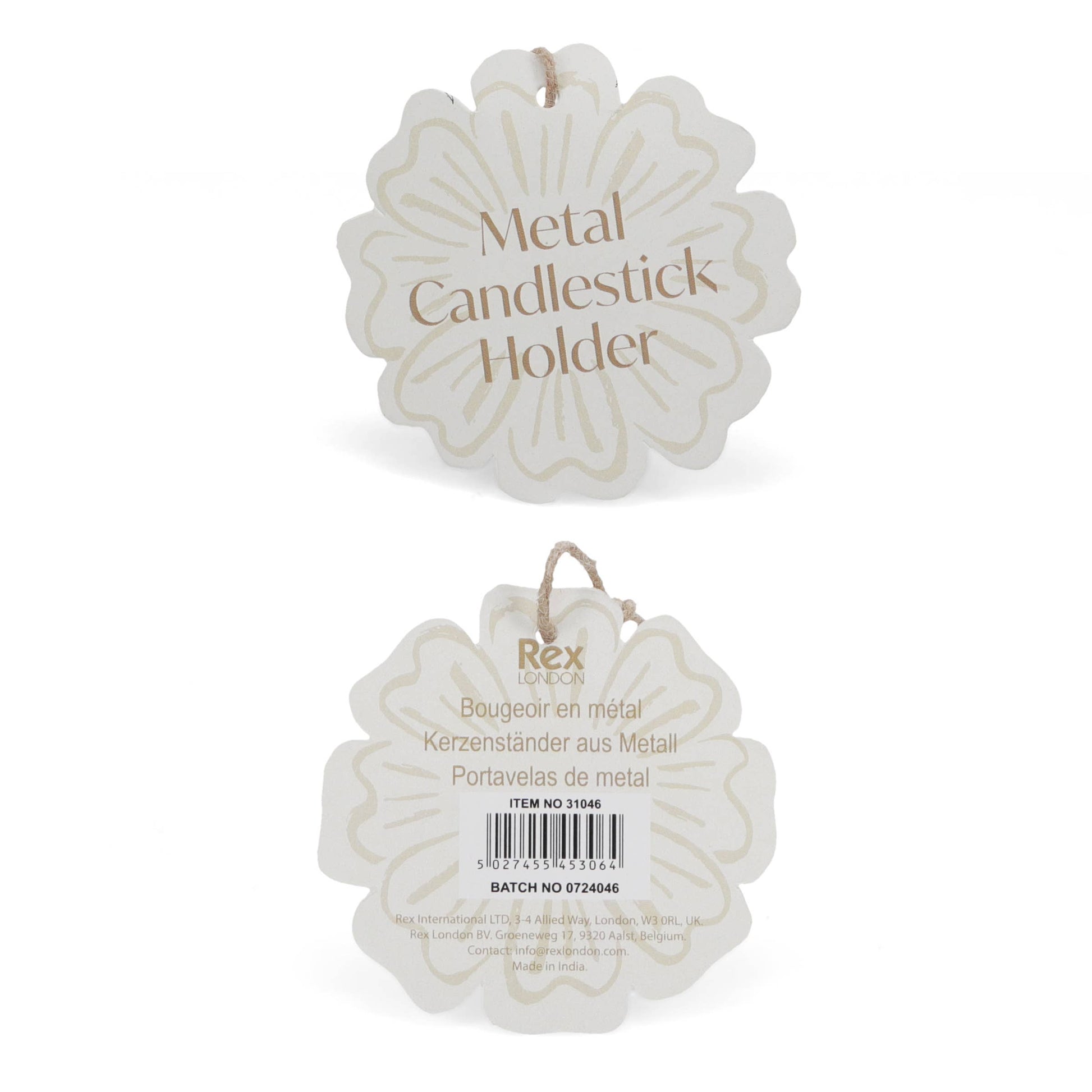 Cast metal candle holder with aqua enamel finish, with flat flower-shaped pan to catch dripping wax. Its simple design and striking colour will look great on any dining table or mantelpiece.