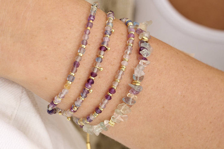 Whether you wear it solo for a barely-there glow or stack it up with your favourites, this fluorite bead bracelet is the perfect mix of boho charm and understated luxe.