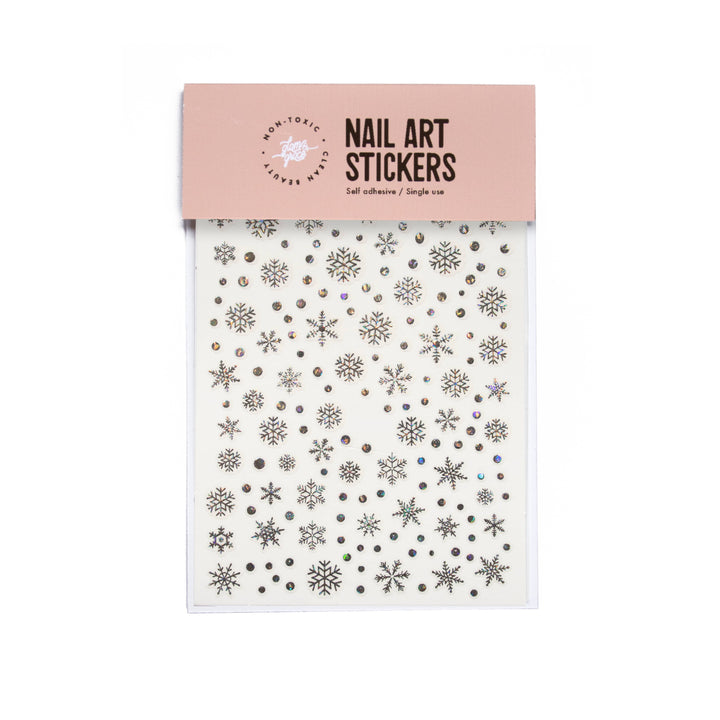 Create a unique look with nail art stickers! Contains 1 sheet of multiple styles of silver holographic snowflakes. Perfect for winter & holiday season!