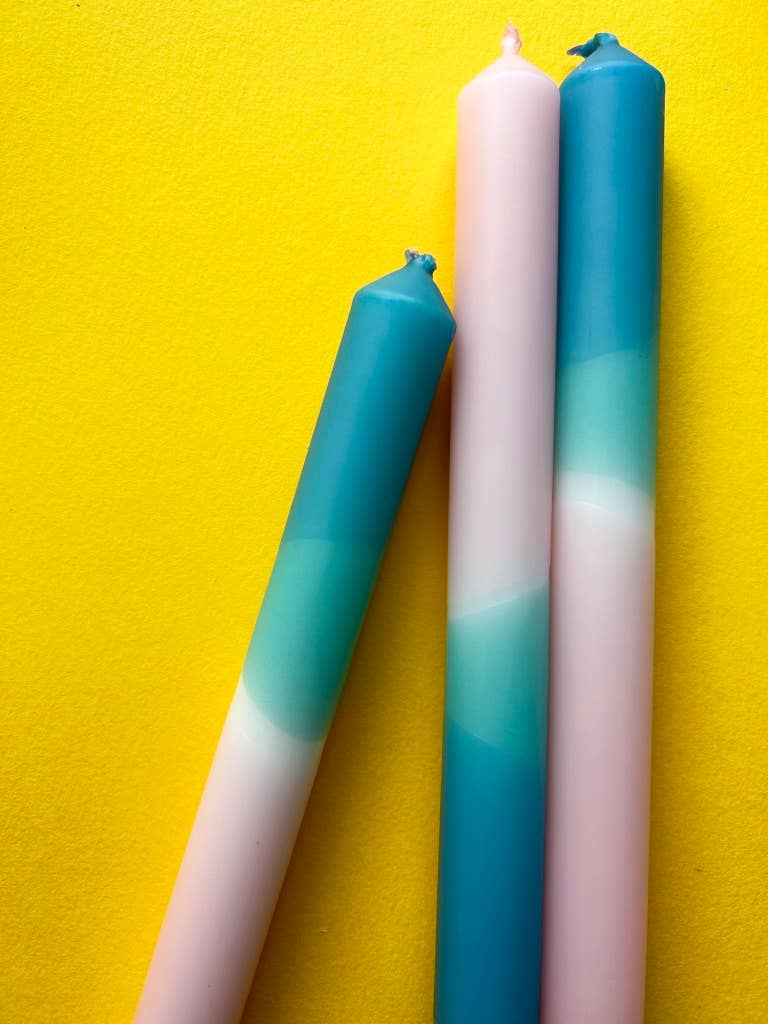 Add some wow to your table with these fabulous candles that come in the most delicious colours. A Set of three lovingly hand-coloured pastel candles in rose and shades of teal that look fabulous individually or lit all at once.
