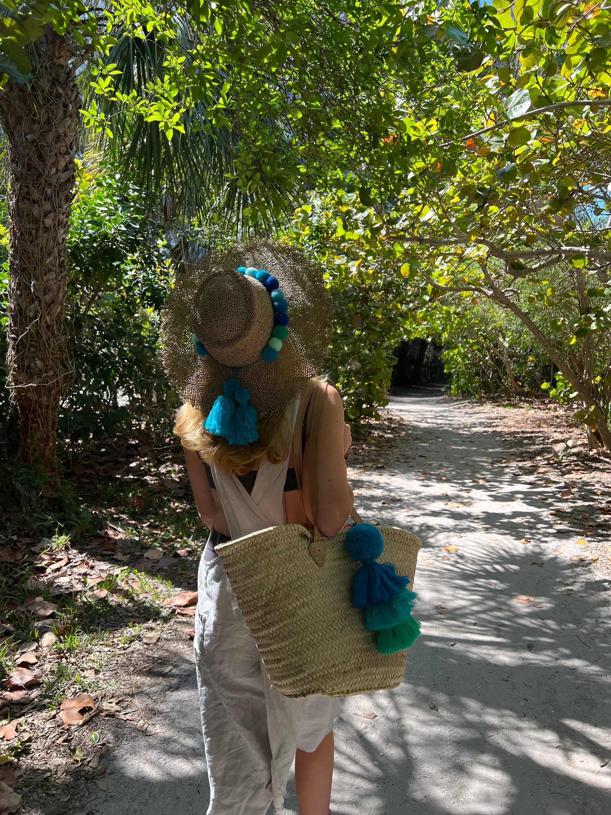 Large straw basket in a classic boho market style with long leather shoulder straps (35cm drop, 52cm width opening at top) and comfortable handles designed and made for PomPom Galore. A lovely deep basket for all your shopping and things. This classic style of straw basket will never go out of fashion and should be a staple in every household and used all year round!